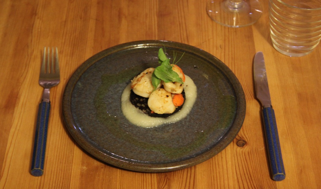 A while back I bought some Spanish smoked black pudding and had been wondering what to do with it. On the naïve assumption that the smokiness would be subtle, I thought I’d create a dish of with scallops and Jerusalem artichoke pure (as Jerusalem artichokes have a mildly smokey taste I thought it would work well with the black pudding). However, I tried a piece the black pudding and it was incredibly smokey – almost had the taste of burnt fried onions – that would absolutely kill the scallops!