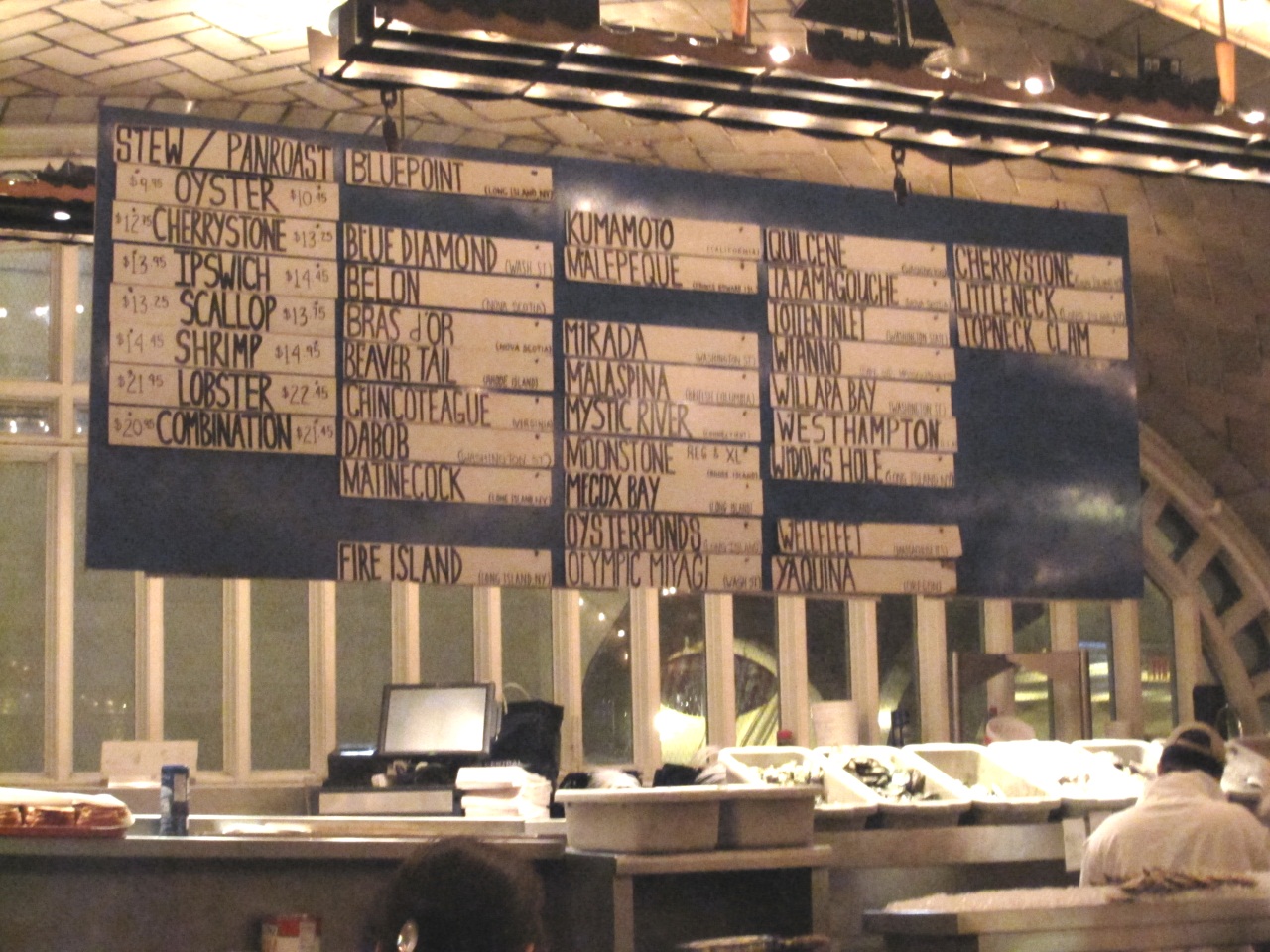It was on my list of things of to do in Manhattan, and I finally got to go to the Oyster Bar under Grand Central Station. The setting is amazing – it looks like a large, fairy-light lit cellar, but we had the choice of long wait for a table in the main dining area or going to the more conventional looking Saloon Bar without a wait – with stomachs rumbling it was an easy decision!